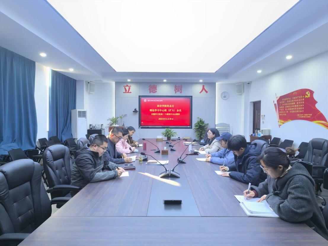 为全面贯彻落实党的二十届四中全会精神,11月19日下午,语言学院召开了党总支理论学习中心组(扩大)专题学习会。此次会议由学院党总支书记丁祖保主持,语言学院理论学习中心组成员、党支部书记以及党支部委员积极参与,共同开展学习活动。