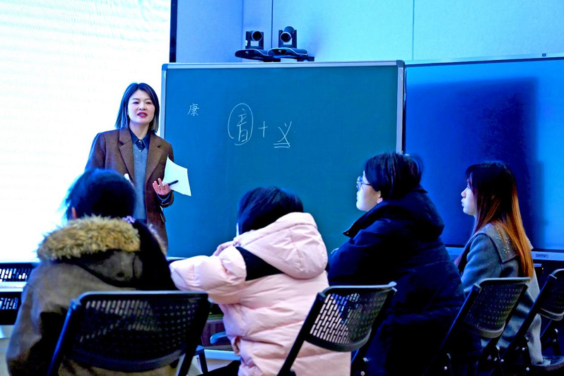 刘洁老师讲授现代汉语“词汇概说”。她以“恋与深空”游戏、《西游记》人物等鲜活案例,将抽象概念具象化,并通过回顾语音、文字等单位帮助学生建立系统的知识框架。评委老师认为,刘洁老师课堂激情饱满、逻辑清晰,同时从比赛角度提出建议:教案应按规范模板撰写,充分体现教学过程设计;语速可适当放慢,做到“娓娓道来”。