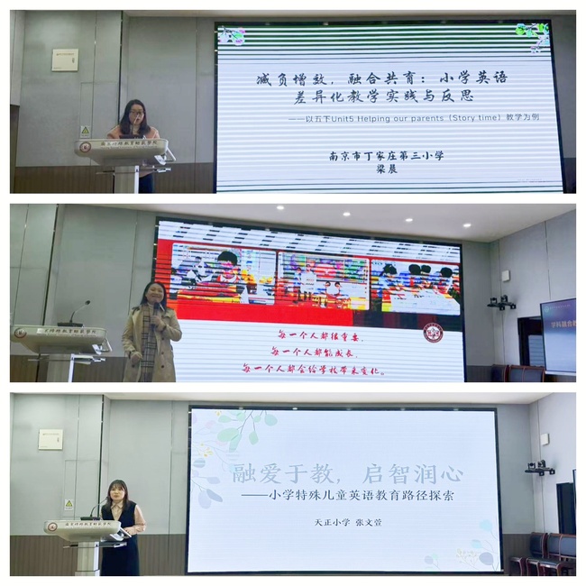 在案例分享环节,来自全市多所小学的教师代表——丁家庄第三小学梁晨、天正小学张文萱、琅琊路小学郑明慧、吴偌寒,晓庄小学文濬校区钱丽,丁家庄小学张勤锋,中电颐和家园小学苏瑾等老师,结合小学英语教学实践,分别展示了在课堂中有效支持特殊需要学生(特别是ADHD学生)的具体做法,生动诠释了“融爱于教、启智润心”的教育理念。案例分享环节结束后,会议随即为在融合教育实践中涌现的优秀案例举行了颁奖仪式。