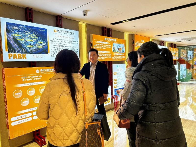 为精准对接数字时代人才需求,破解语言类专业人才培养与就业转型难题,12月23日下午,南京特殊教育师范学院语言学院组织教师前往南京江北新区扬子江数字视听产业园开展参观调研。此次调研由语言学院副院长徐琴芳带队,学院党总支副书记张冬冬,英语系主任赵冬华及相关教师共同参加。园区招商组组长叶子龙、南京鼎梦资产管理有限公司执行董事任华卿热情接待并陪同。