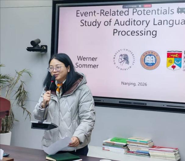 为深化特殊教育领域认知神经科学研究,推动语言处理研究方法的创新应用,3月16日,柏林洪堡大学Werner Sommer教授应邀莅临语言学院,以 “Event-Related Potentials in the Study of Auditory Language Processing”(听觉语言加工的事件相关电位研究)为主题开展学术讲座。讲座由徐琴芳副院长主持,学校相关专业教师、本科生和听力障碍语言研究中心全体成员参加了现场交流,国内其他高校的相关领域学者参加了线上交流。
