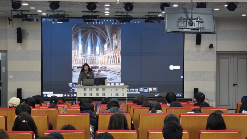 在文化探访环节的分享中,学生代表们通过一张张鲜活的实景照片,带领在场同学“云游”纽卡斯尔泰恩桥、杜伦大教堂、剑桥康河、伦敦大本钟与大英博物馆等经典地标。从工业革命时期的工程杰作到中世纪的学术重镇,从百年学府的人文底蕴到国际都市的多元交融,全方位、沉浸式的分享让大家深刻领略到英伦文化的独特魅力。与此同时,学生代表们还结合自身研学经历,分享了海外交流中的实用沟通技巧、跨文化交际的注意事项,为同学们未来的海外学习、国际交流提供了极具价值的参考。