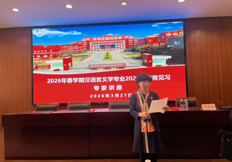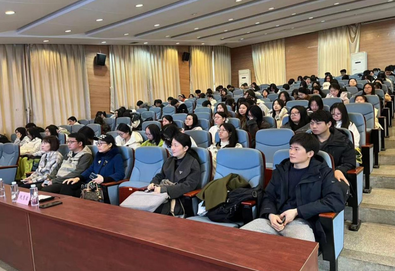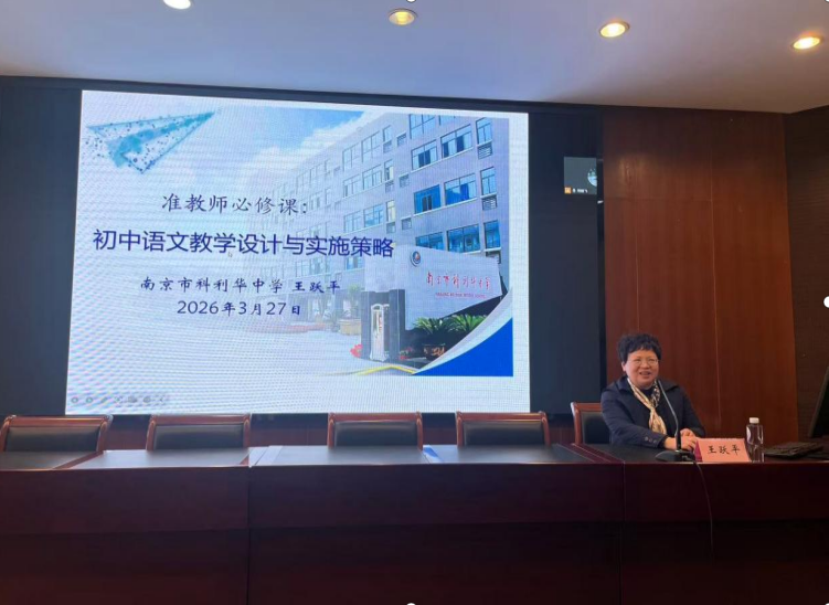 3月27日上午,语言学院在博韵楼114报告厅举办汉语言文学专业 2023 级教育见习专家讲座。本次讲座特邀南京市科利华中学教科室主任王跃平老师主讲,主题为 “准教师必修课:初中语文教学设计与实施策略”。汉语言文学专业2023级全体学生及中文系教师参会,讲座由中文系主任赵惠岩教授主持。